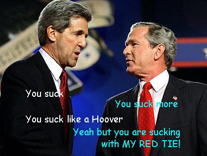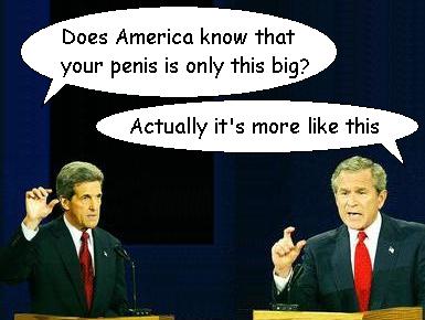 Worse, all of the talk is about stupidly gratuitous things like war and unemployment and the future of our country. Where’s the important stuff - The vital issues confronting our nation – the meat and potatoes of Democracy? WHERE IS FOOTBALL? What is Kerry’s stance on the West Coast offense? Shouldn’t America know whom Bush would start at Utility Player? Could either of them beat Jeff Garcia’s 0.0 quarterback rating?
